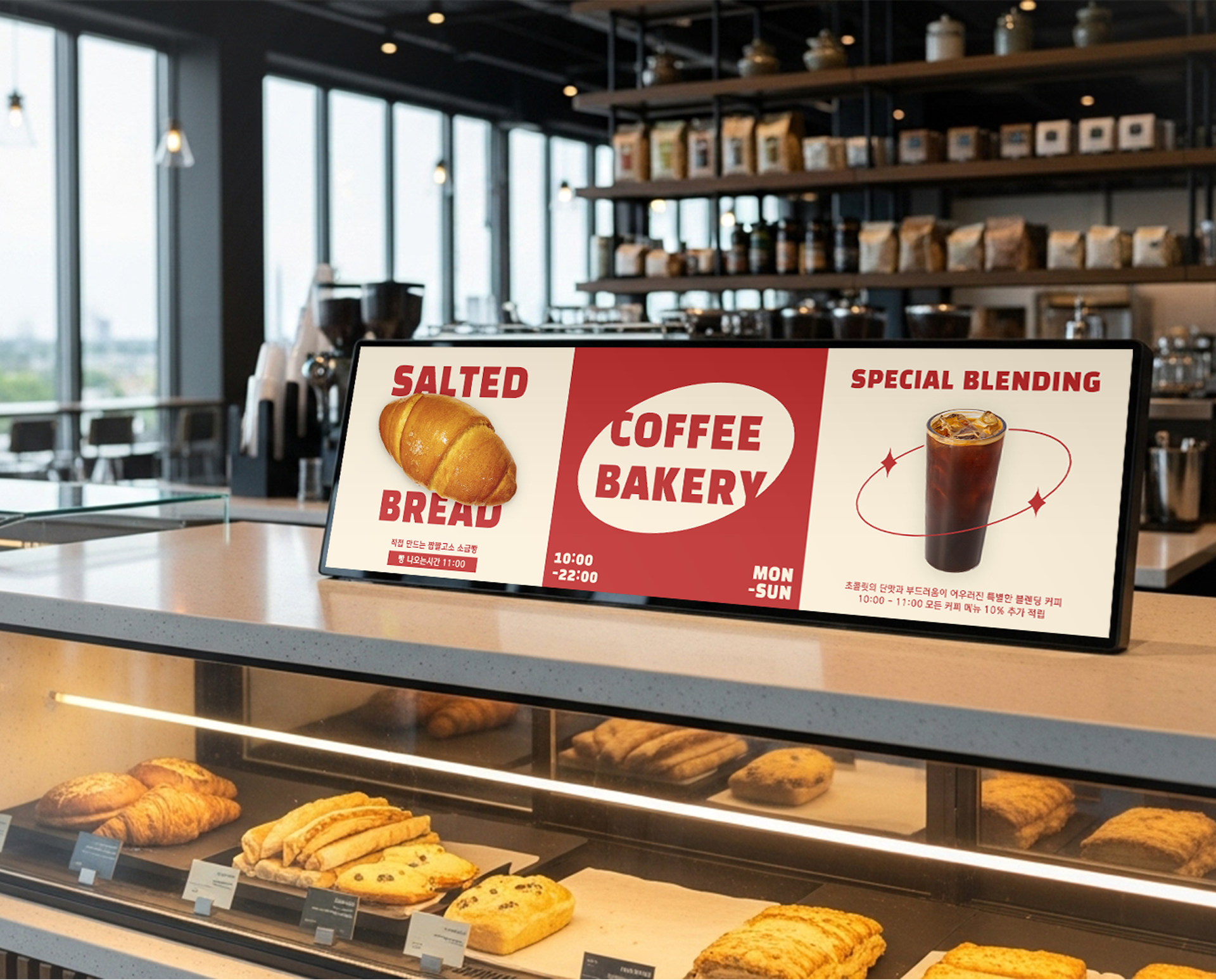 매장에 최적화된 초슬림 와이드 화면으로 시선 집중.